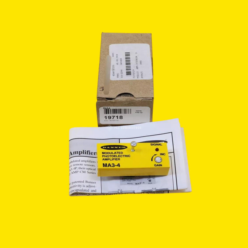 CARACTERISTICAS PRINCIPALES. DESCRIPCION: Banner Ma3-4 Amplificador Fotoeléctrico Modulado. CONDICION: NUEVO CAJA ABIERTA * MODELO: Ma3-4 * CONDICIÓN: NUEVO CAJA ABIERTA * MARCA: BANNER * FACTURAMOS EL PRECIO YA INCLUYE IVA * ANTES DE REALIZAR SU COMPRA FAVOR DE PREGUNTAR SI AUN ESTA DISPONIBLE * NOTA DE COMPRA: LA CAJA DEL PRODUCTO PUEDE VENIR ABIERTA O SELLADA (AMBAS CUENTAN CON GARANTIA) (G.14/08/23).