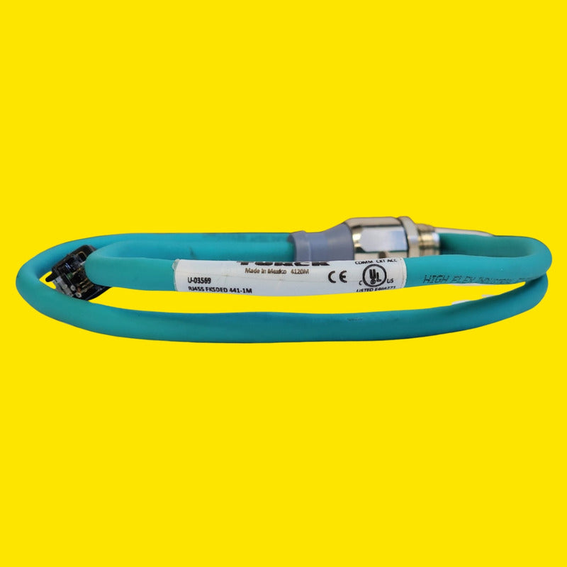 Cable Ethernet Industrial Turck 1m M12 A Rj45 Blindado Tpe _______________________________________ *Marca: Turck *Modelo: RJ45S FKSDED 441-1M *Numero de ID: U-03569 *Tipo de producto: Cable de extension para montaje en panel (Receptaculo) *Funcion: Pasamuros industrial M12 a RJ45 *Rosca de montaje: PG9 (Montaje trasero) *Conector A: RJ45 Macho (Recto, 8 pines, Blindado) *Conector B: M12 x 1 Hembra (4 pines, Codificacion D) *Longitud del cable: 1.0 metro *Categoria de red: Ethernet CAT5E *Material de la chaqueta: TPE (Elastomero termoplastico) *Color del cable: Verde azulado (Teal) *Blindaje: Si (Proteccion integral contra interferencia EMI/RFI) *Calibre del cable: 24 AWG *Flexibilidad superior: Aprobado para Flexlife y C-Track *Resistencia termica: Clasificacion de curvatura en frio hasta -40 grados Celsius *Resistencia al fuego: Certificaciones UL 1685 y UL1061 *Uso industrial: Resistente a aceites, quimicos y ambientes de alta vibracion Condición: Usado Facturamos, el precio incluye IVA 10/02/2026K